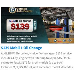 Amazing service!! The service I request was amazing and they were very communicative about my car. They also were able to work with me on the price and allow me to leave my car there to have it serviced. Thank you so much German Auto Center!